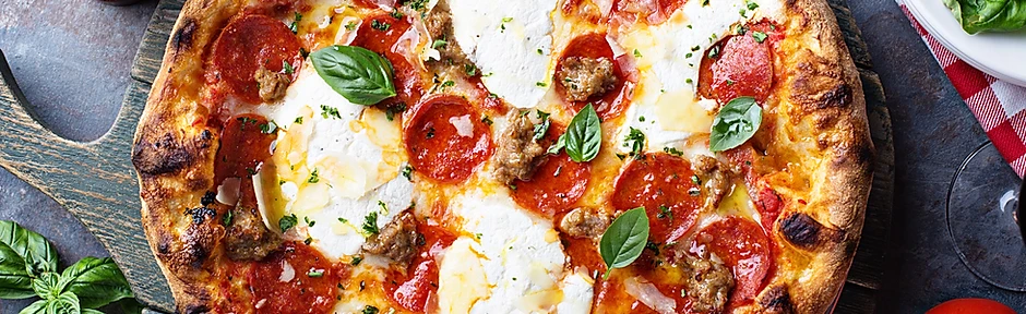 mit Putenblock-Schinken, Salami, Pfefferoni, Champignons & Oliven - AG